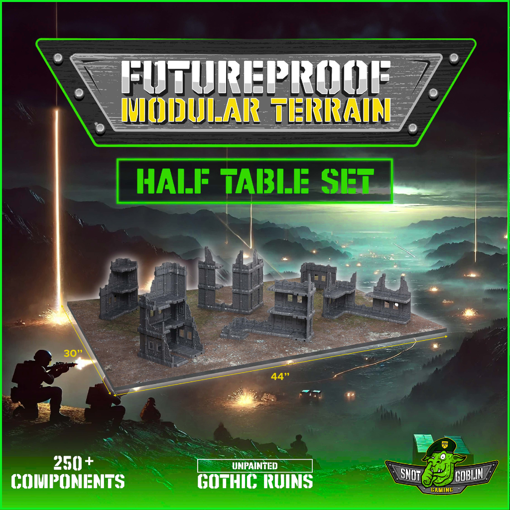 The Half Table Set contains enough Core Components to build a full 30×44″ table of terrain to Games Workshop suggested density/layouts!